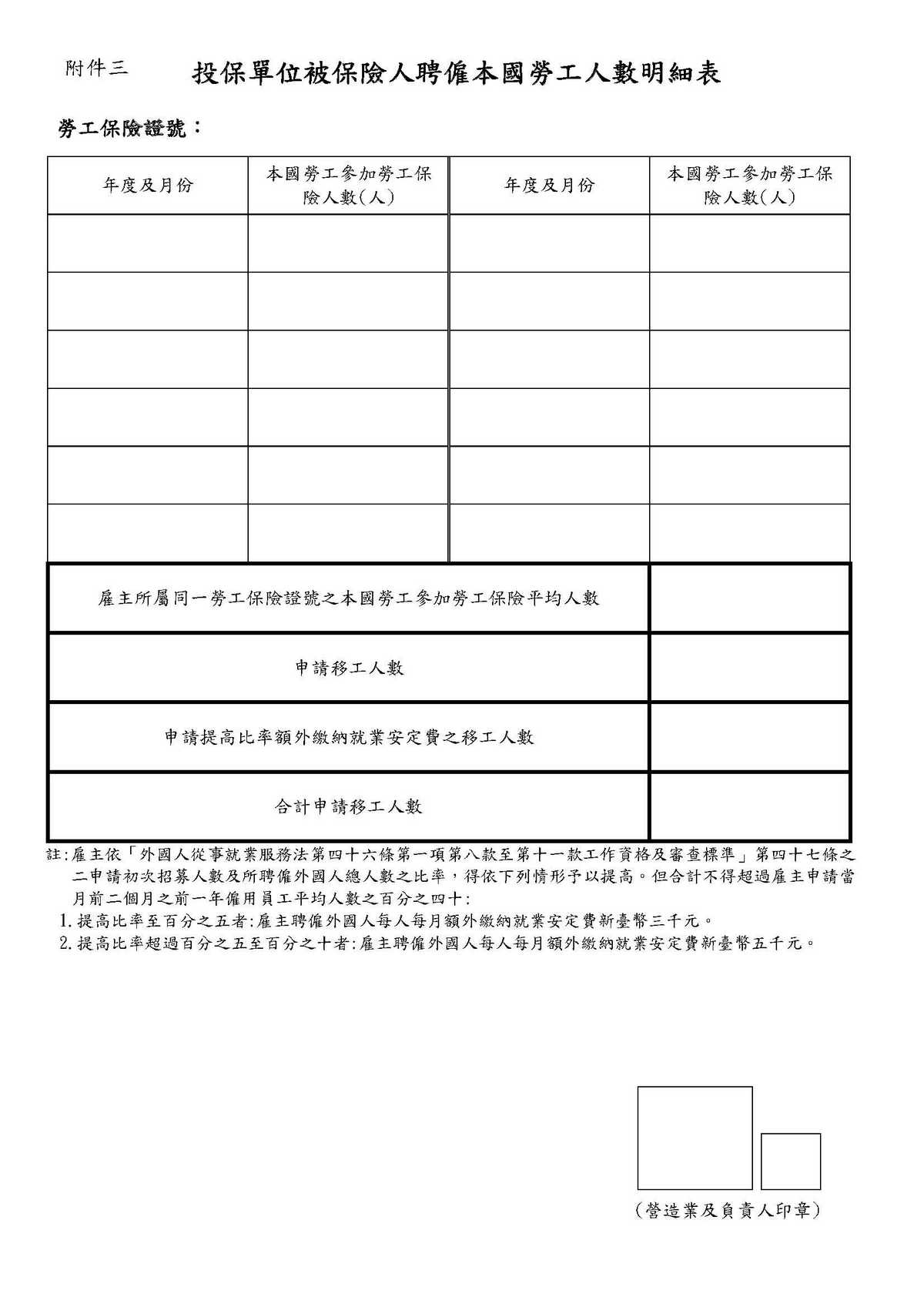 投保單位被保險人聘催本國勞工人數明細表
