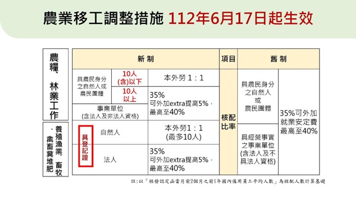 上圖/資料來源:勞動力發展署農務移工聘僱管理說明(112年9月4日)